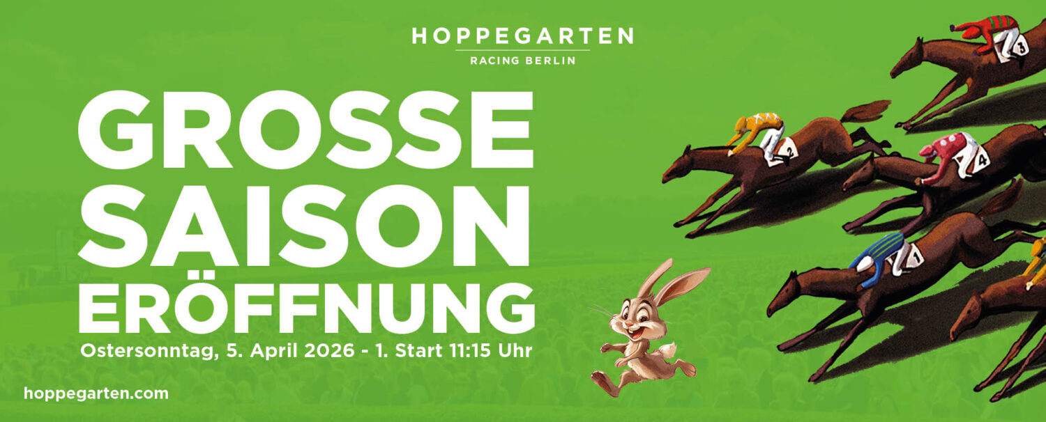 Es geht endlich wieder los! Jedes Jahr kommen am Ostersonntag unter dem Motto “Bunte Osterrennen” Freunde, Familien und Fans aus Berlin und Brandenburg zusammen und genießen bei Sonnenschein einen abwechslungsreichen Tag auf der Rennbahn Hoppegarten. Neben den spannenden Rennen gibt es für die kleinen Galoppfans wieder jede Menge Osterüberraschungen.